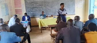 Acting DEO Kagadi Beatrice Mbabazi addressing School Heads